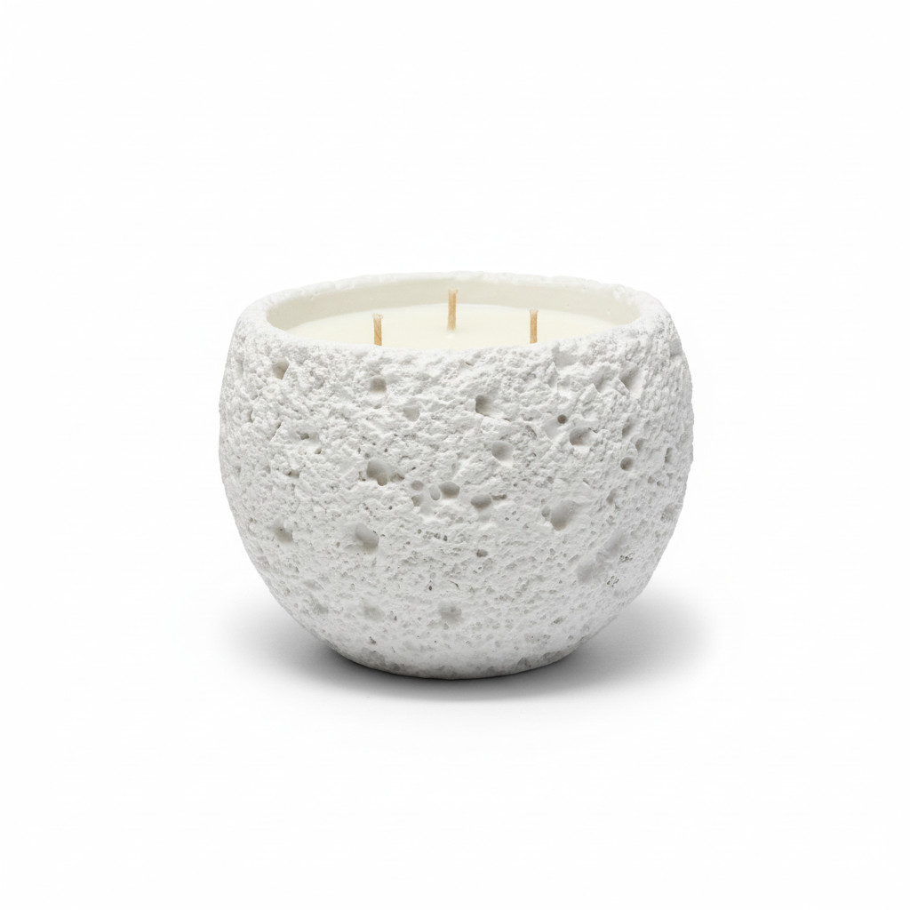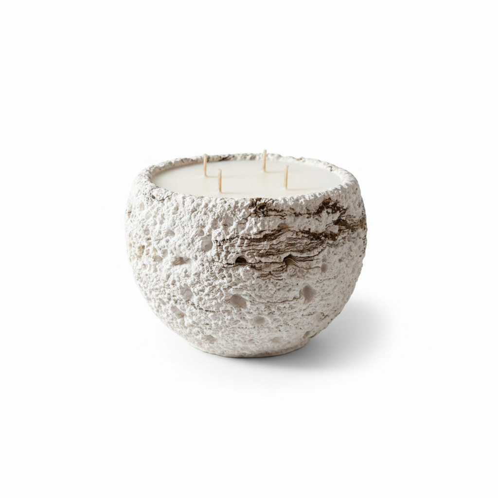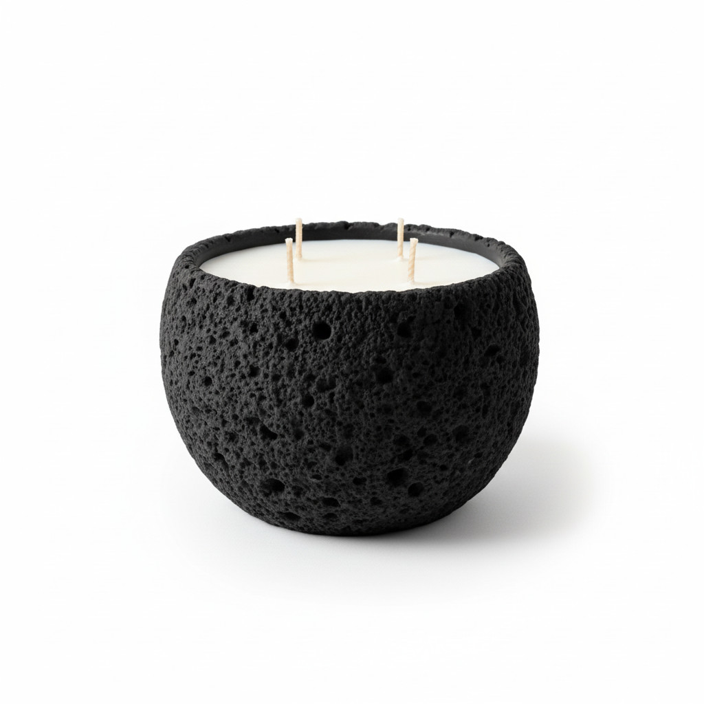 נר MoonRock שואב השראה מהמרקמים של סלעים וולקניים וקליפות ירח.