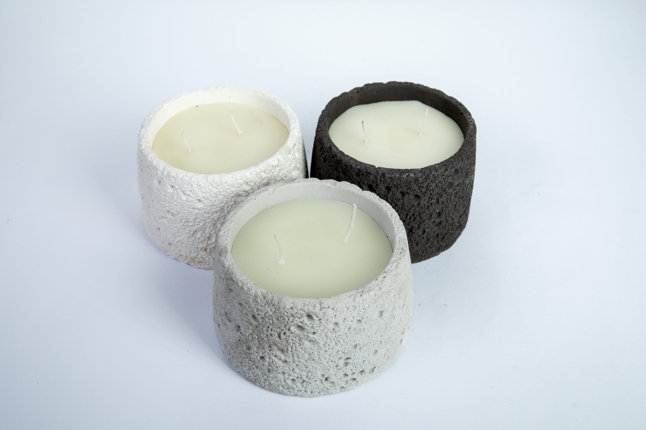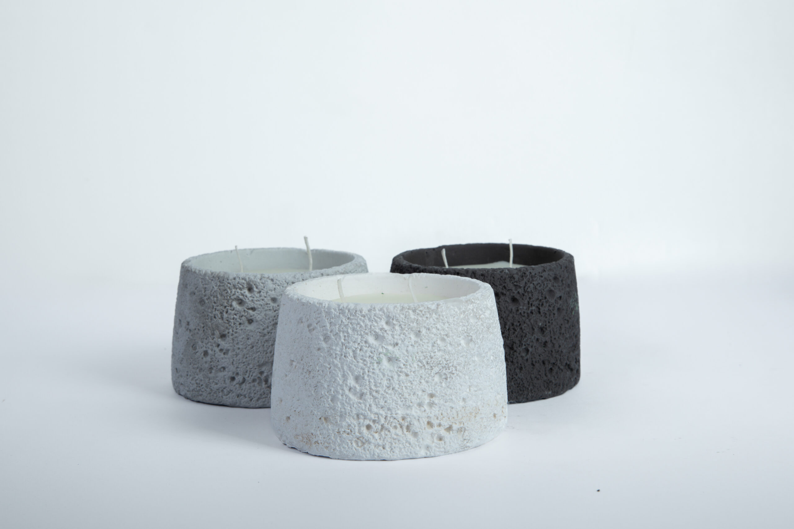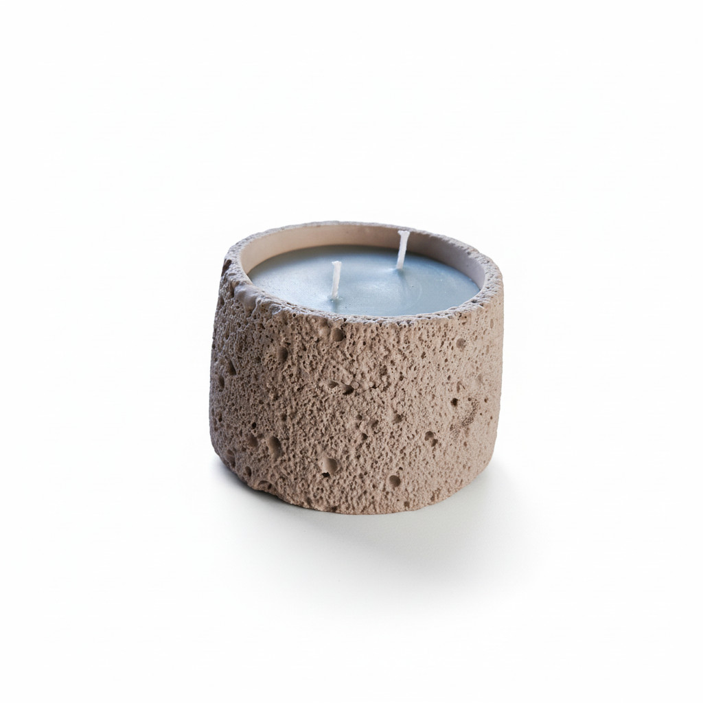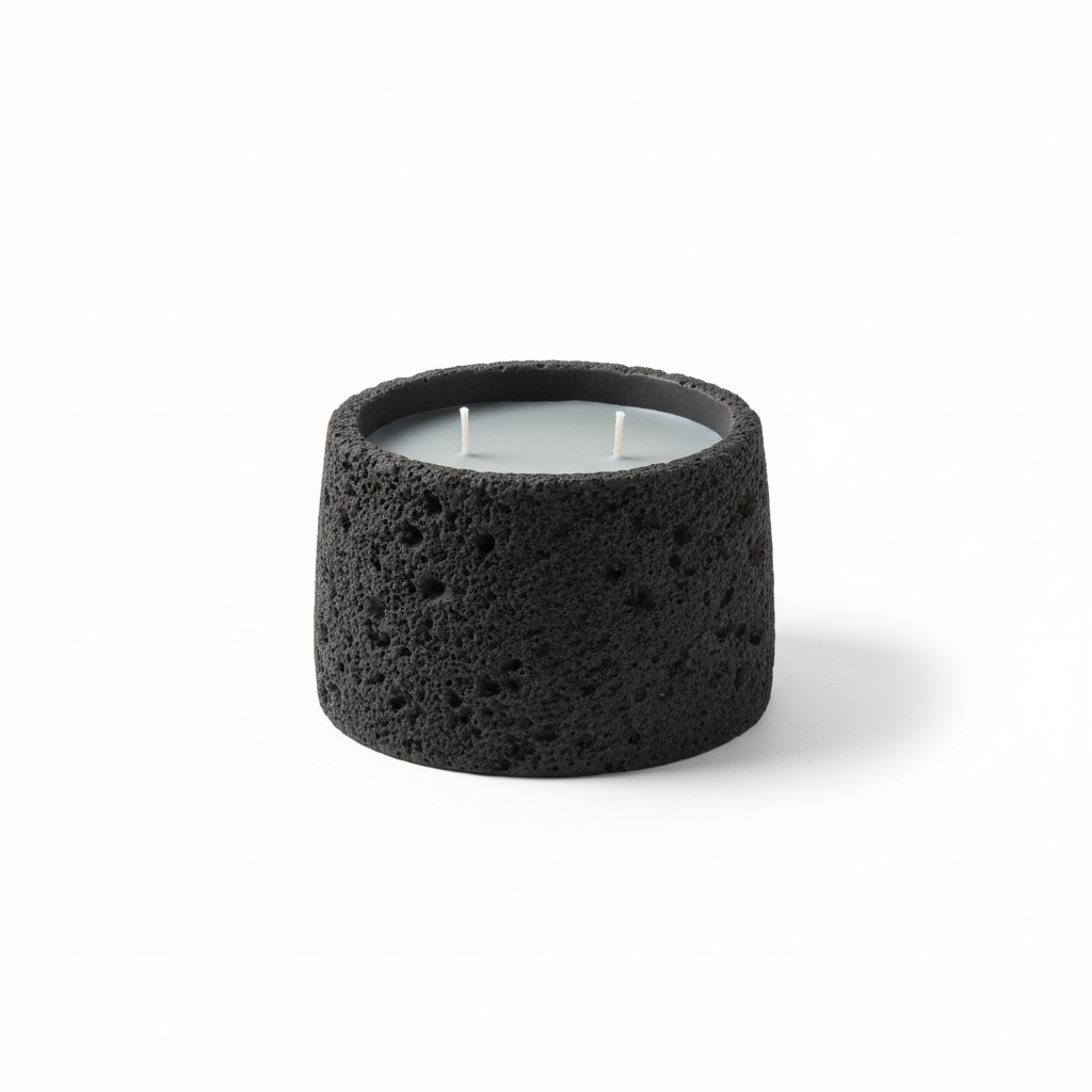 נר MoonRock שואב השראה מהמרקמים של סלעים וולקניים וקליפות ירח.